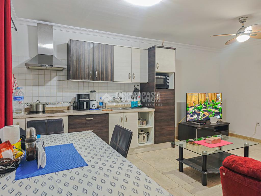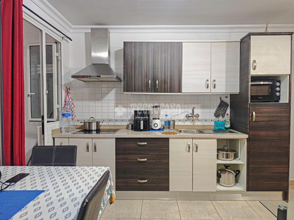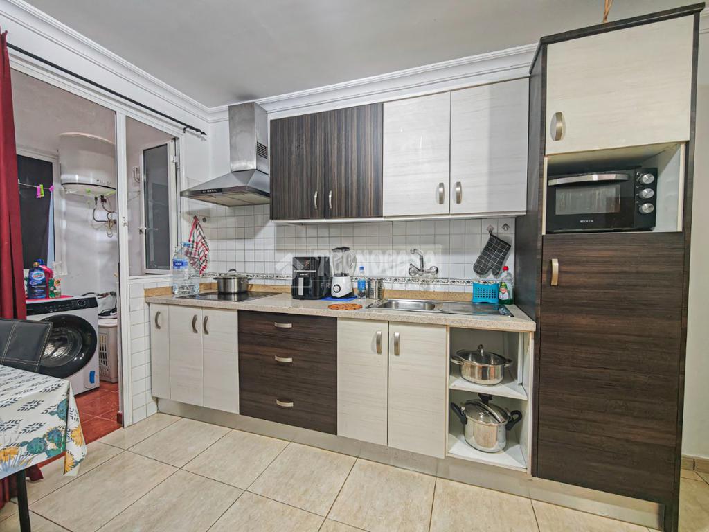 El salón de tamaño acogedor, se integra de manera armoniosa con la cocina, creando un espacio abierto que maximiza la sensación de amplitud. La cocina cuenta con muebles renovados, encimera práctica y electrodomésticos actualizados, ofreciendo tanto estética moderna como funcionalidad diaria.